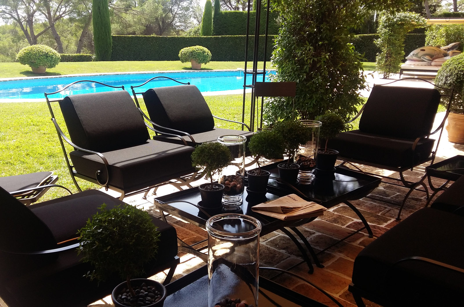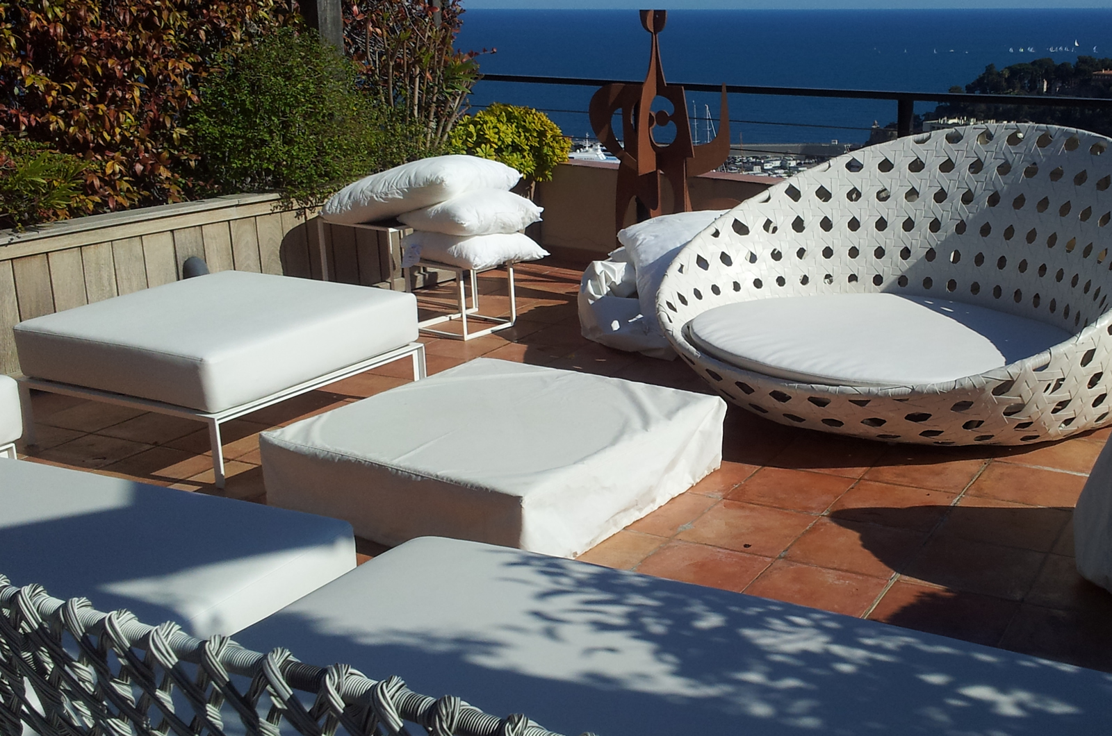 - Salons de jardin : Coussins en tissus outdoor ou simili cuir (Sunbrella, Perennials, Chivaro, Silvertex… ).